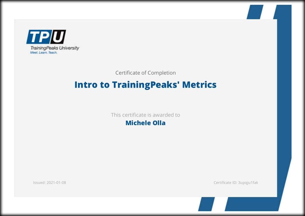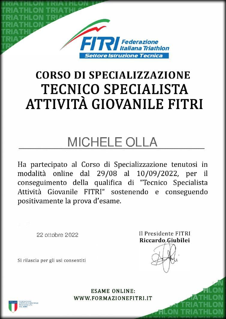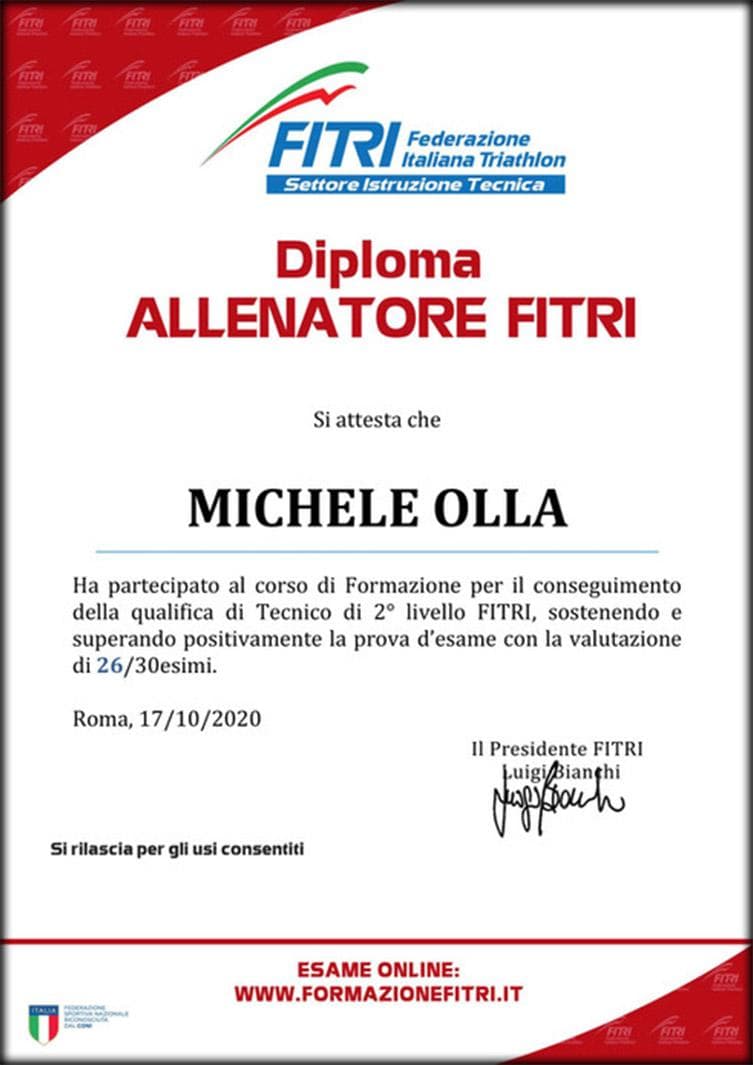 Attualmente sto completando anche la certificazione internazionale come Triathlon Certified Coach, rilasciata da ITCA (International Triathlon Coaches Association), che consentirà di operare a livello internazionale. Il completamento è previsto entro il primo semestre del 2023.