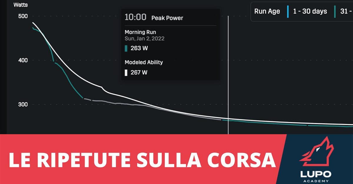 • Le ripetute sui 100, 200 e in alcuni casi 400 sono sempre massimali. Non ha senso basarsi sul passo. In questo caso il misuratore di potenza è la chiave di svolta. Il non riuscire a mantenere un determinato wattaggio ci dice esattamente quando questo sforzo non è più sostenibile. Su ripetute più lunghe ci aiuta a dosare lo sforzo soprattutto se non siamo in pista.