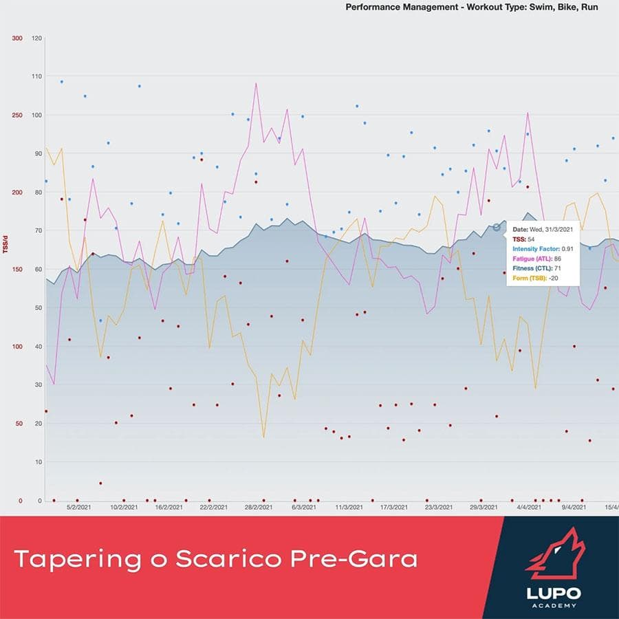Focalizzandoci sul massimizzare la performance, non possiamo però limitarci ad un fare meno riducendo i volumi a caso, questo significherebbe diminuire il nostro stato di Fitness (CTL).